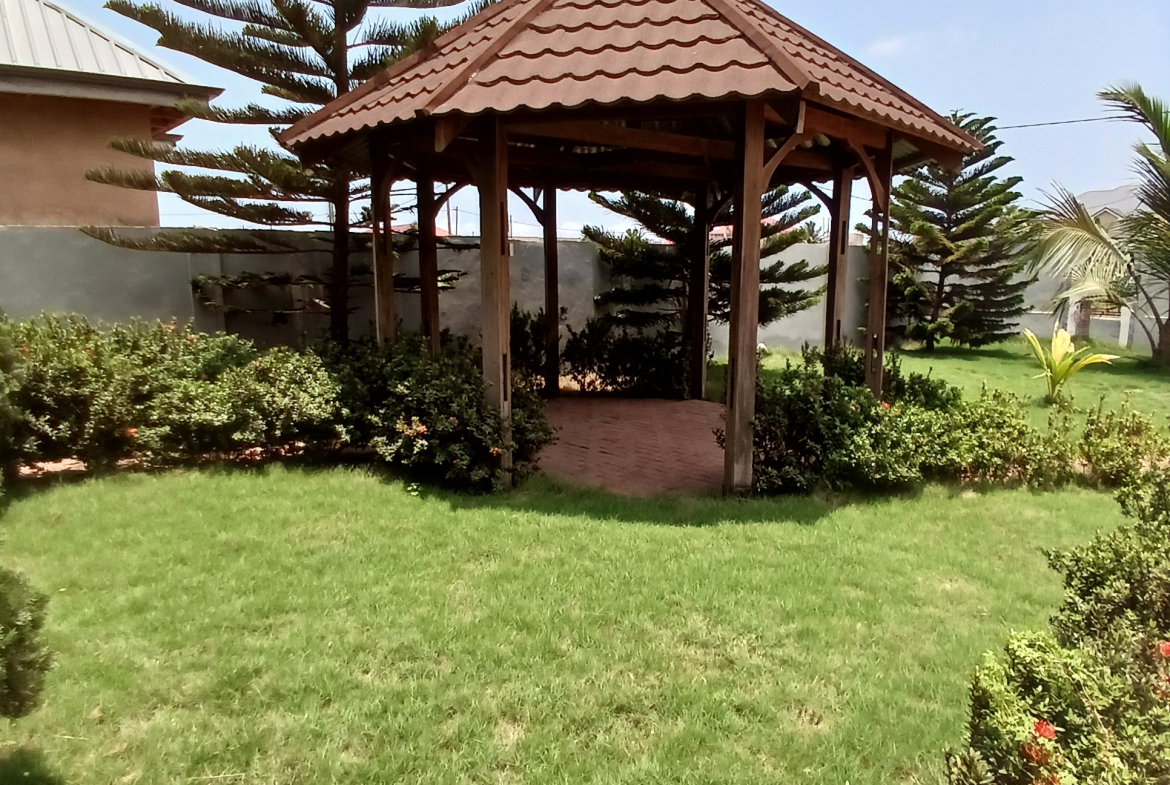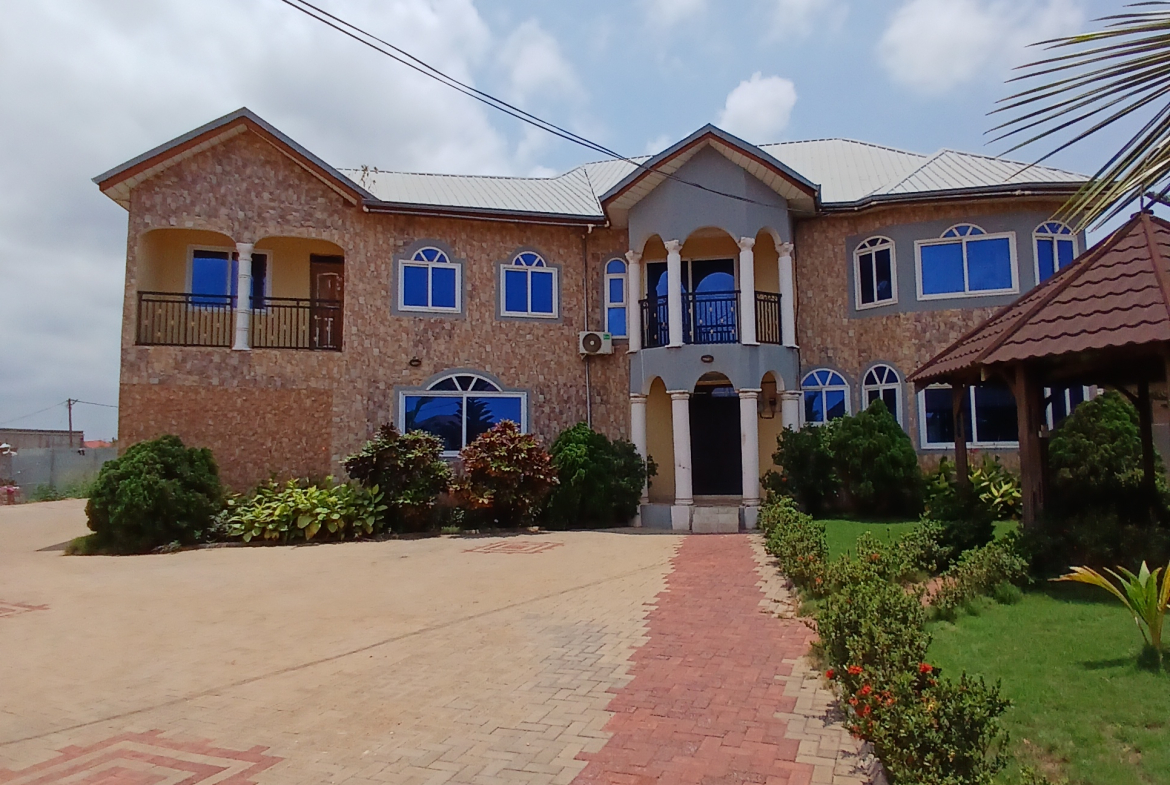Located in Miotso- Dawhenya, this stunning 6-bedroom house sits atop a sprawling piece of land, offering ample space for your dreams to unfold. The property features: